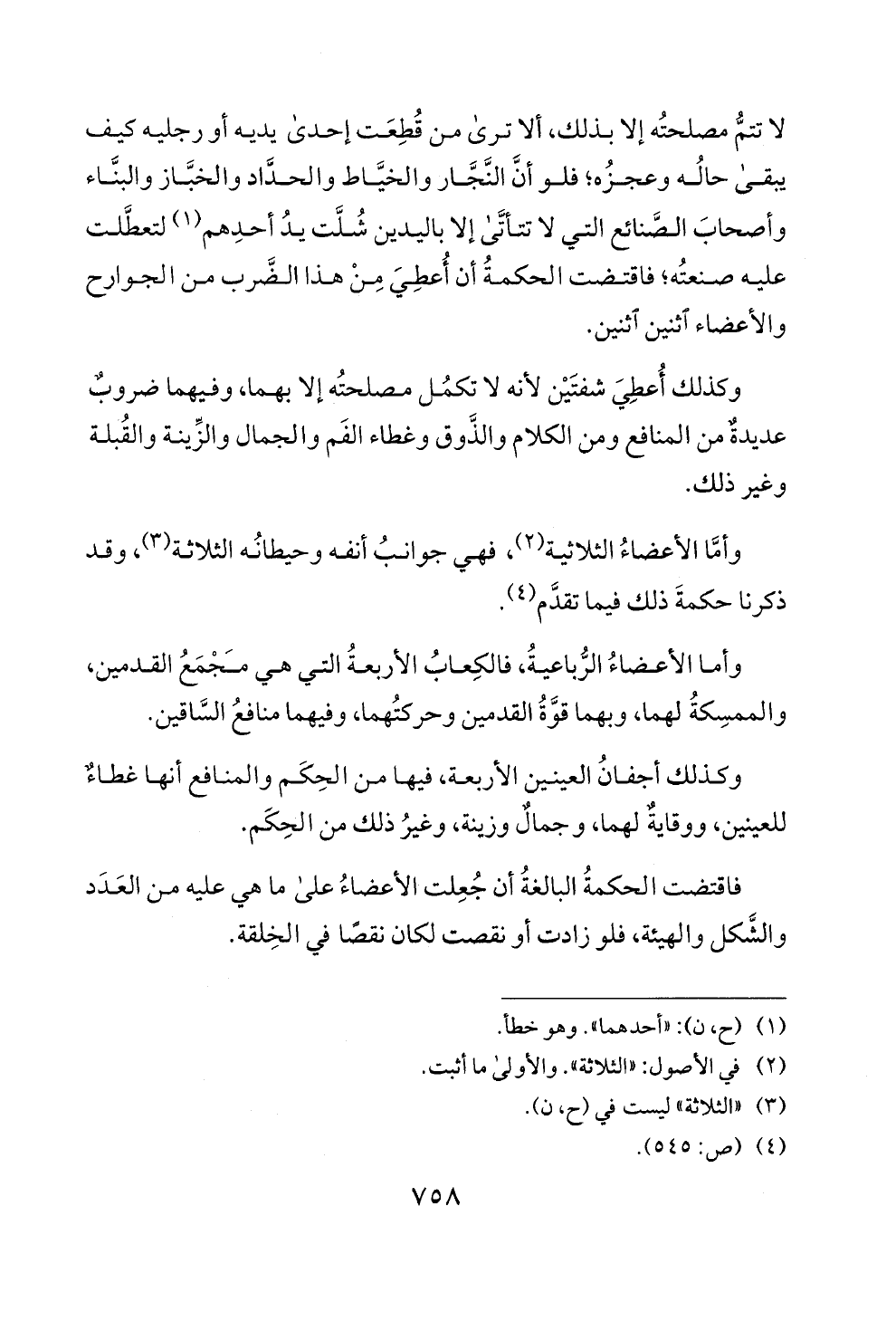 فاقتضت الحكمة البالغة أن جعلت الاعضاء على ما هي عليه من العدد
