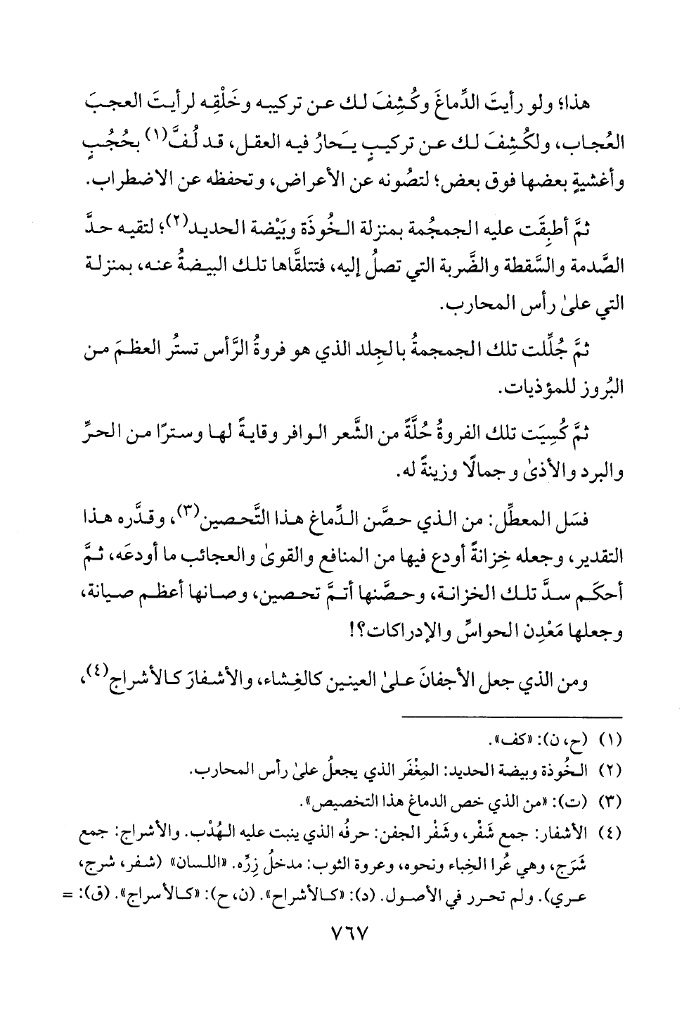 ثم أطبقت عليه ا لجمجمة بمنزلة الخوذة وبيضة الحديد (2)؛ لتقيه حد