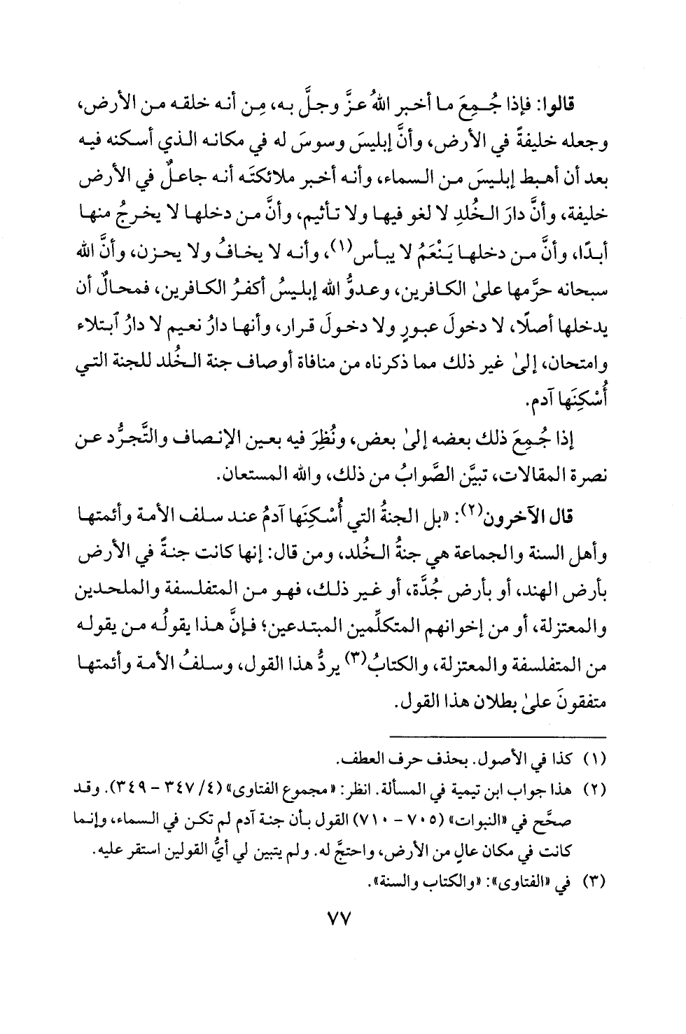 قال الاخرون (2): "بل الجنة التي اسكنها ادم عند سلف الامة و ئمتها