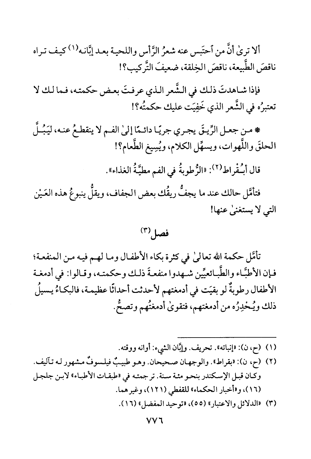 (3) "الدلائل والاعتبار" (55)، "توحيد المفضل " (6 1).