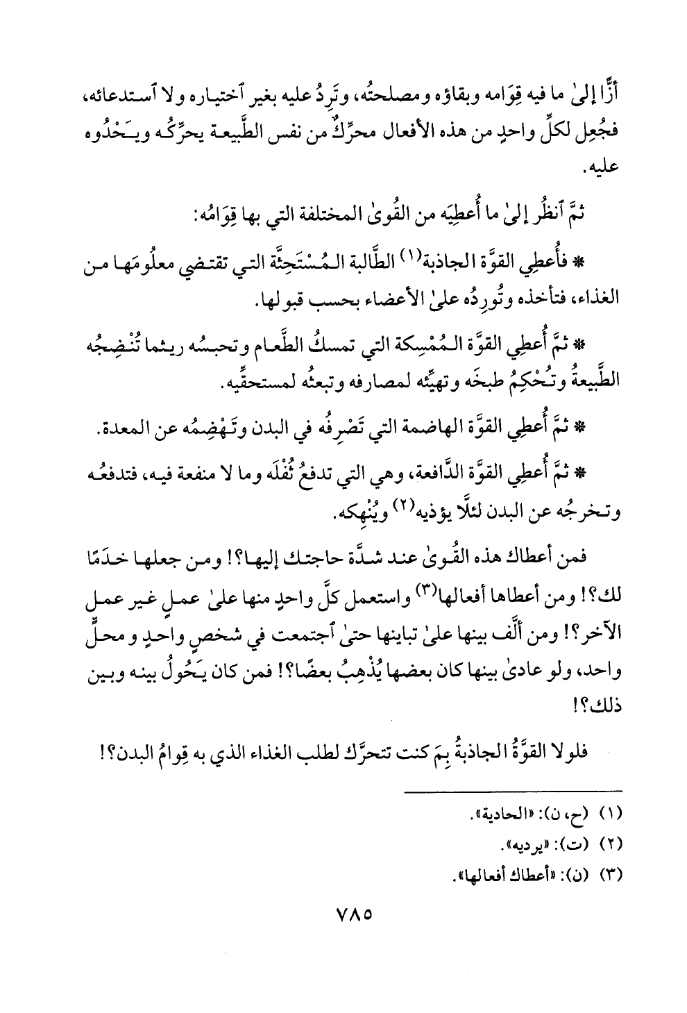 ثم انظر إلى ما عطيه من القوى المختلفة التي بها قوامه:
