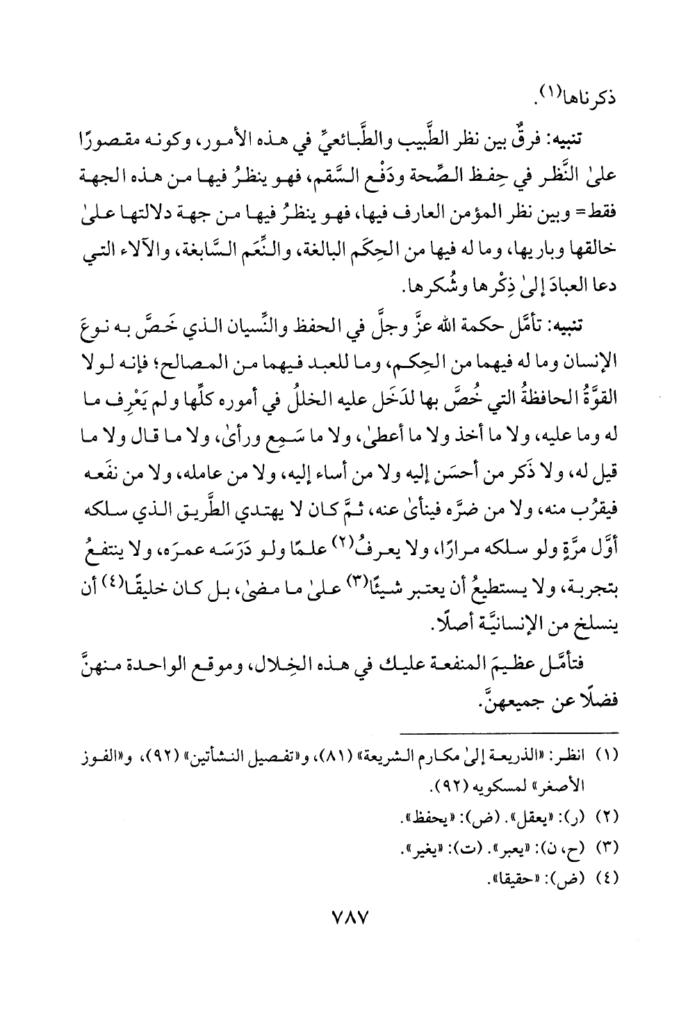 تنبيه: تامل حكمة الله عز وجل في الحفظ والنسيان الذي خص به نوع