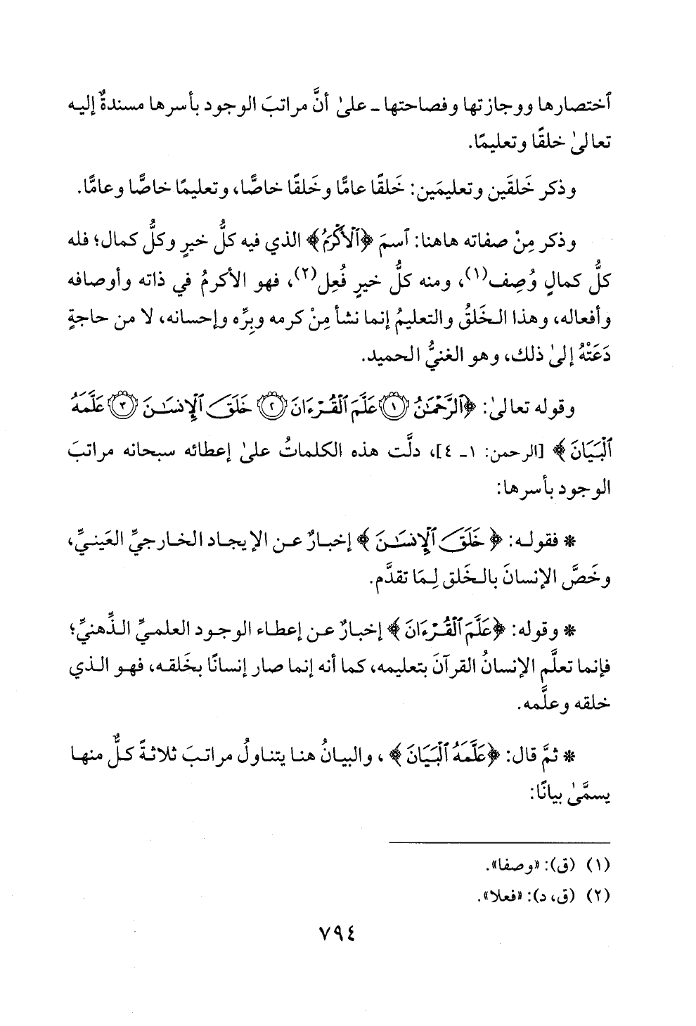 البيان) [احر: 1 - 4]، دلت هذه الكلمات على إعطائه سبحانه مراتب