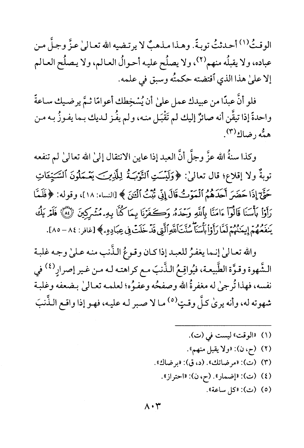 الوقت (1) أحدثت توبة. وهذا مذهب لا يرتضيه الله تعا لى عز وجل من