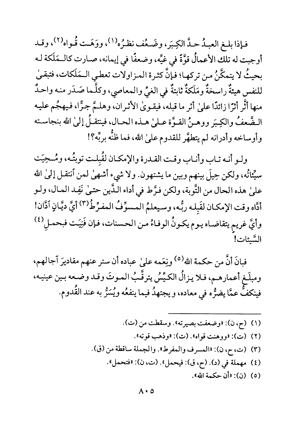 فإذا بلغ العبد حد الكبر، وضعف نظره (1)، ووهت قواه (2)، وقد