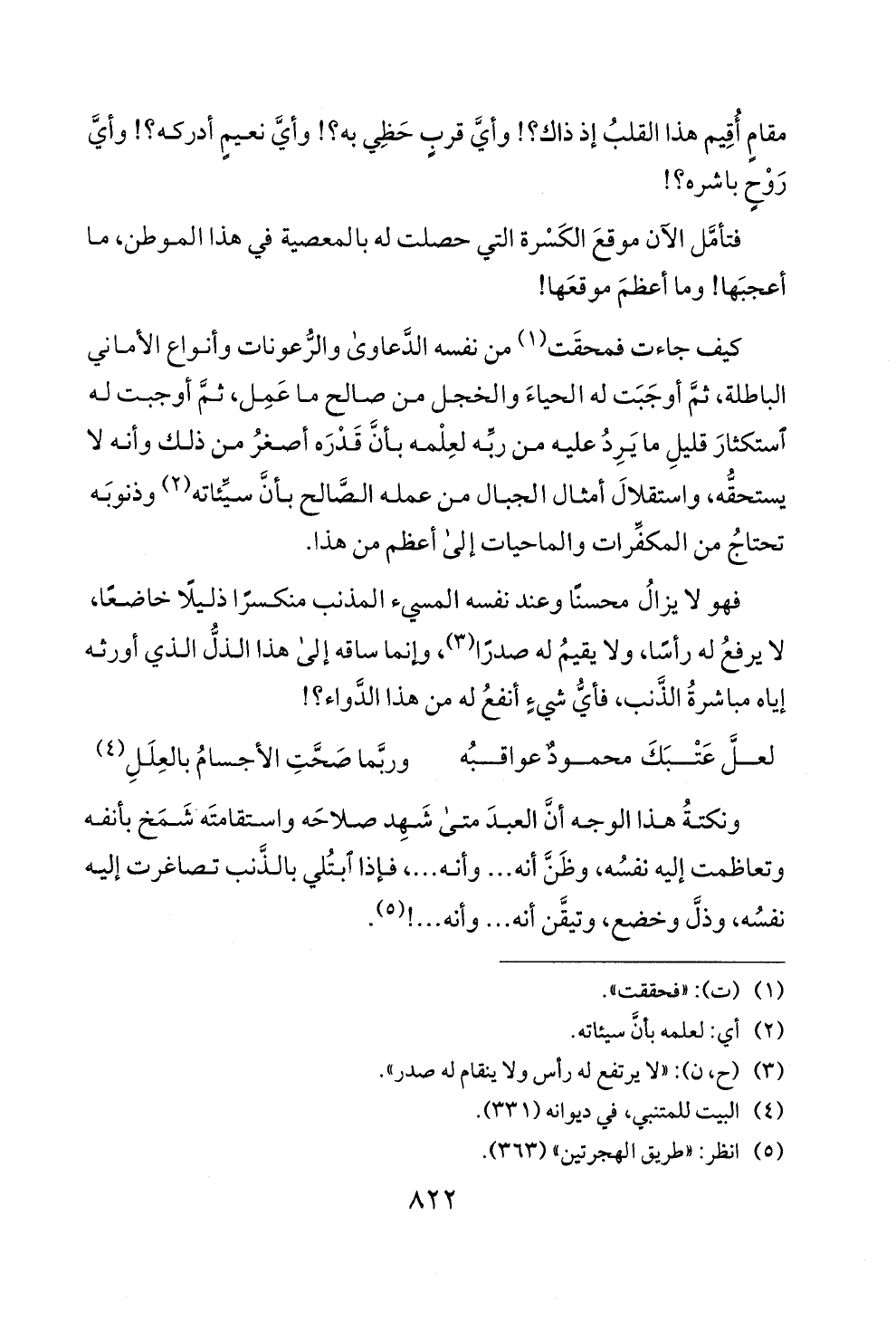 فهو لا يزال محسنا وعند نفسه الصسيء المذنب منكسرا ذليلا خاضعا،