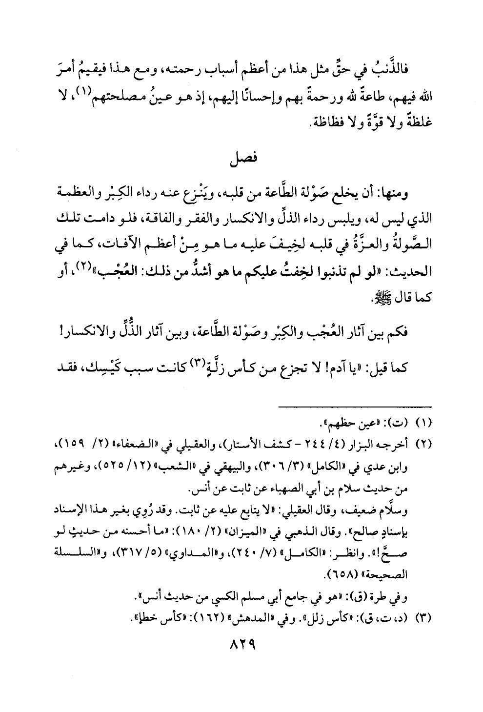 ا لحديث: " لو لم تذنبوا لخفت عليكم ما هو اشد من ذلك: العجب " (2)، ا و