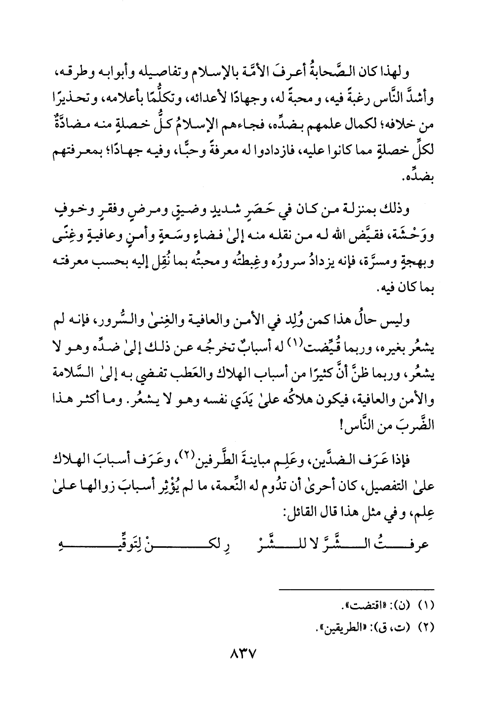 فإذا عرف الضدين، وعلم مباينة الطرفين (2)، وعرف أسباب ا لهلاك