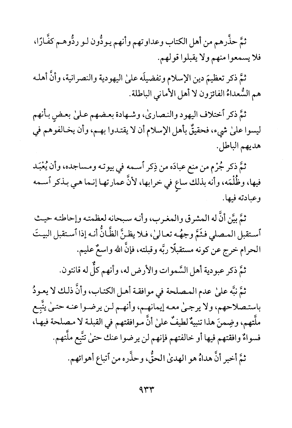 ثم ذكر تعظيم دين الاسلام وتفضيله على اليهودية والنصرانية، و ن أهله