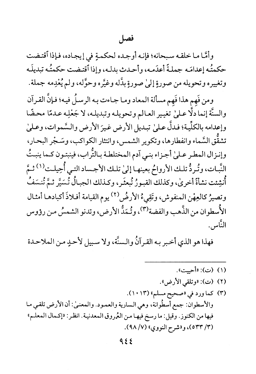 والسنة إنما دلا على تغيير العالم وتحويله وتبديله، لا جعله عدما محضا