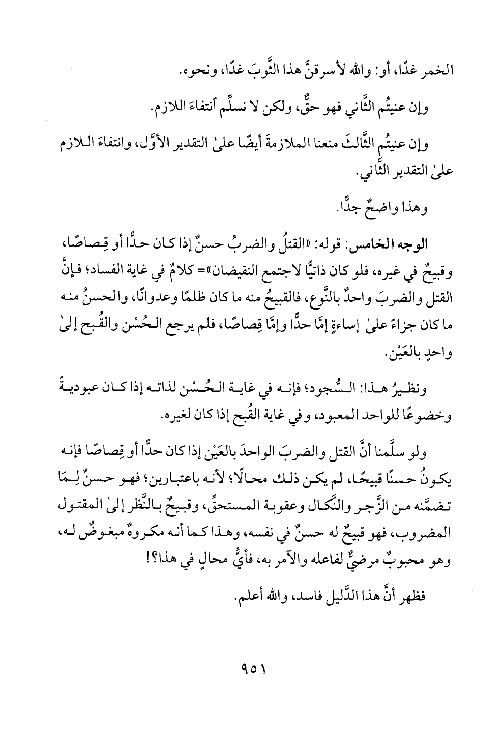 الوجه ا لخامس: قوله: "القتل والضرب حسن إذا كان حدا او قصاصا،