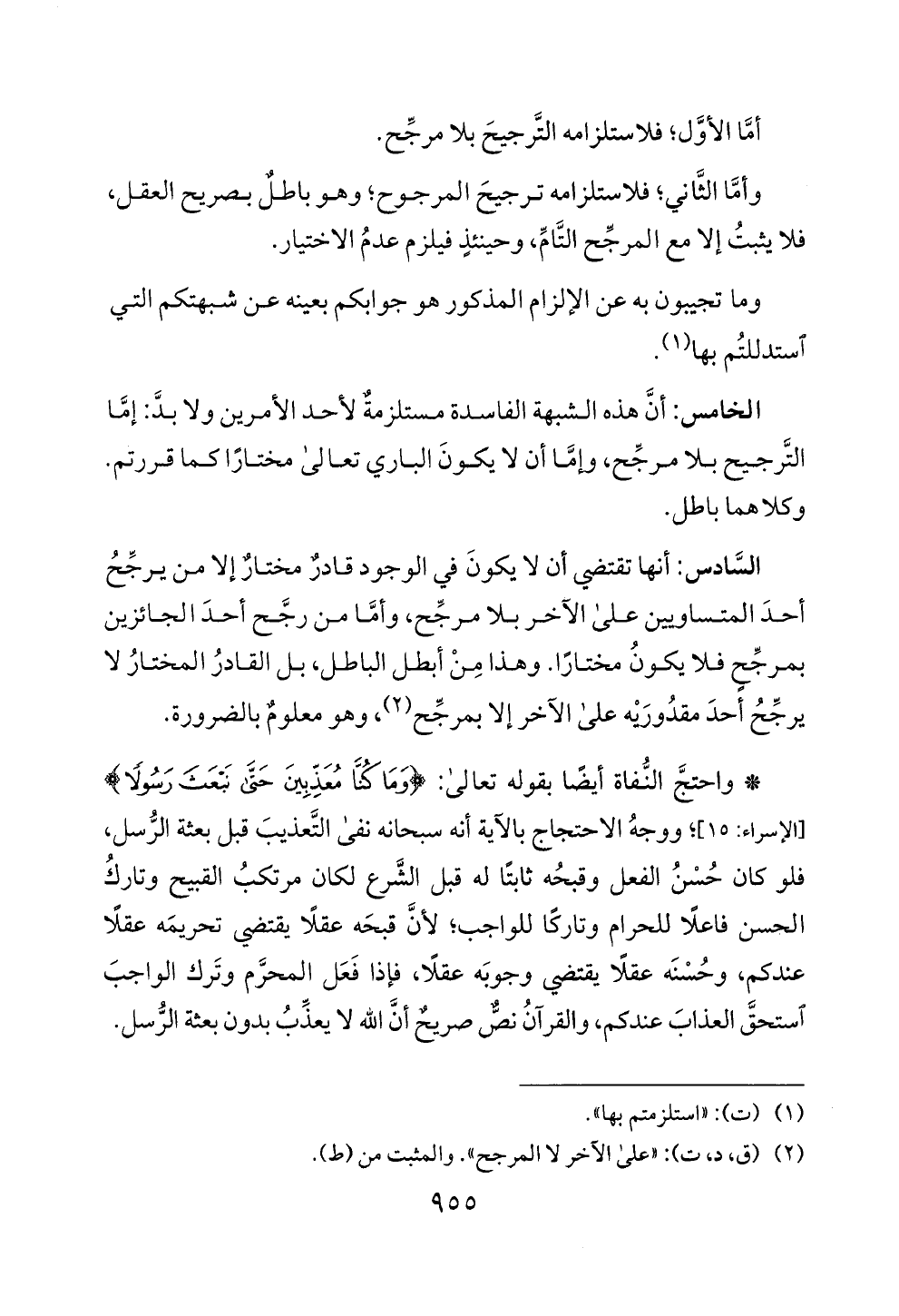 الخامس: ن هذه الشبهة الفاسدة مستلزمة لاحد الأمرين ولا بد: إما