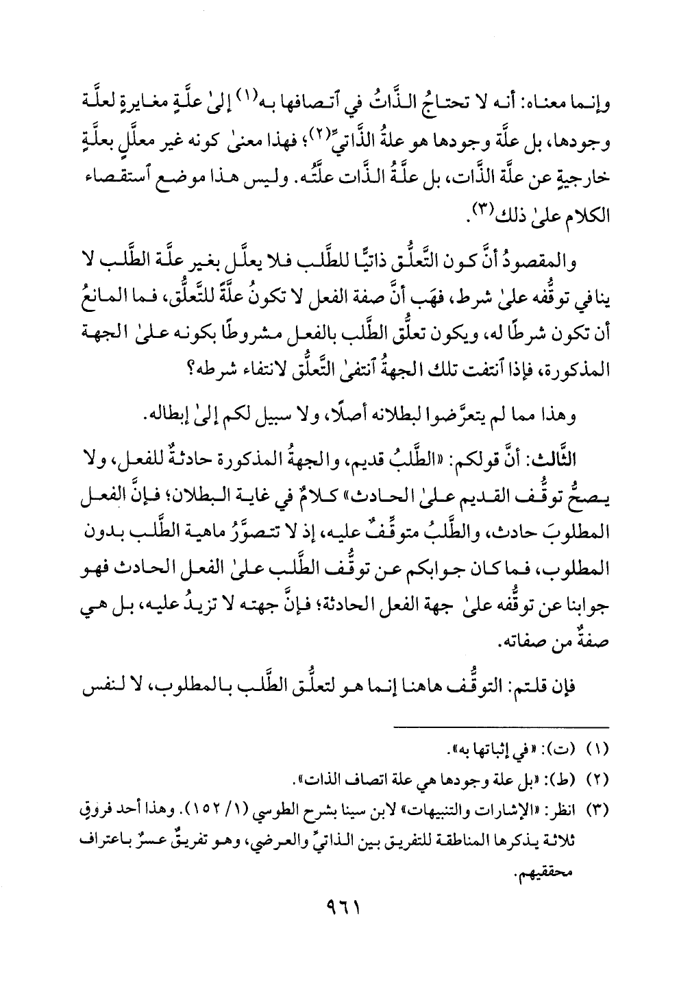 (2) (ط): "بل علة وجودها هي علة اتصاف الذات ".