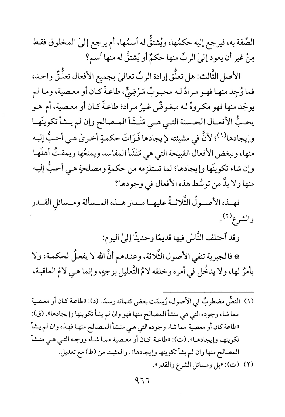 فهذه الاصول الثلاثة عليها مدار هذه المسالة ومسائل القدر