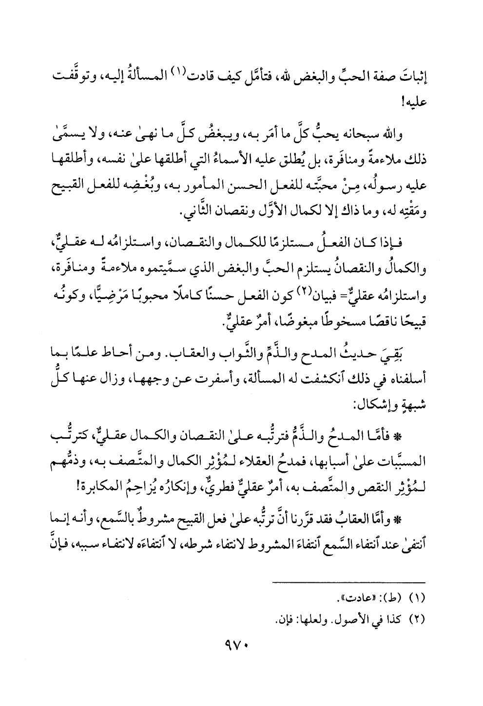 و لكمال والنقصان يستلزم الحب و لبغض الذي سميتموه ملاءمة ومنافرة،