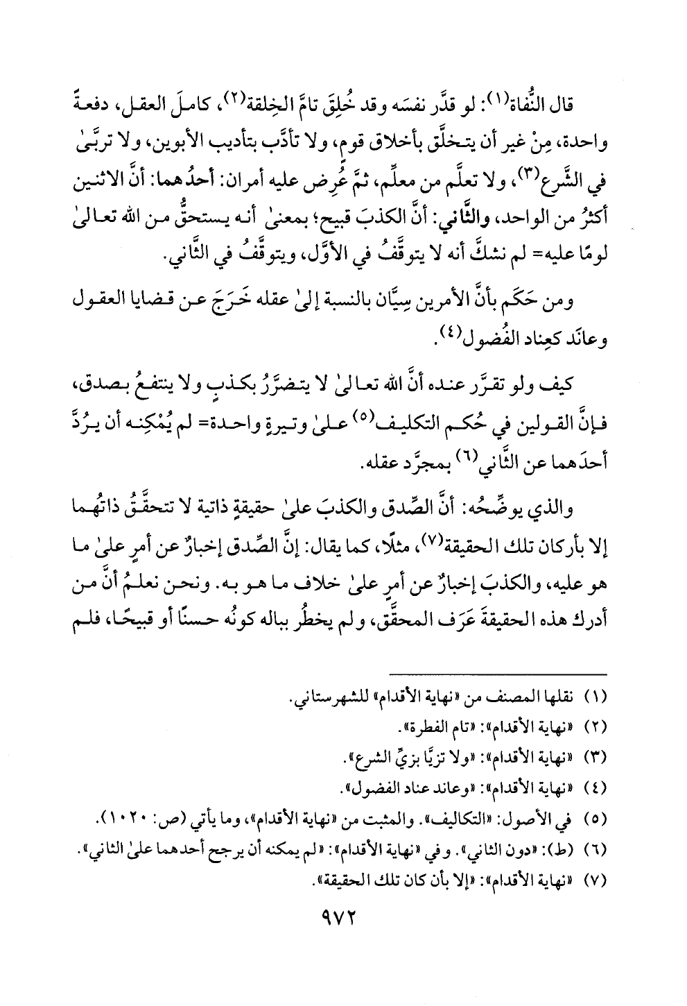 (1) نقلها المصنف من "نهاية الاقد م" للشهرستاني.