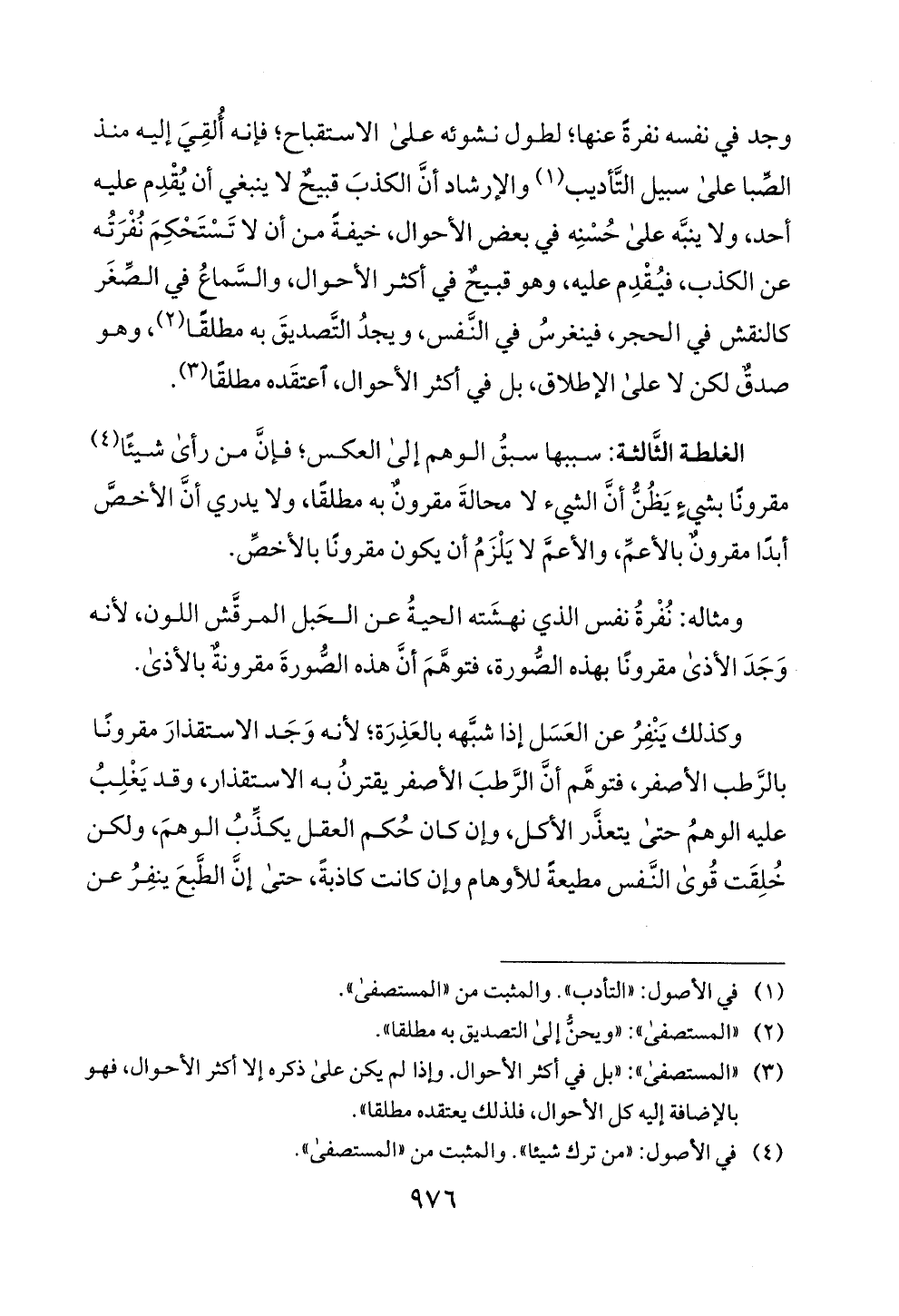 (2) "المستصفى ": " ويحن إلى التصديق به مطلقا".