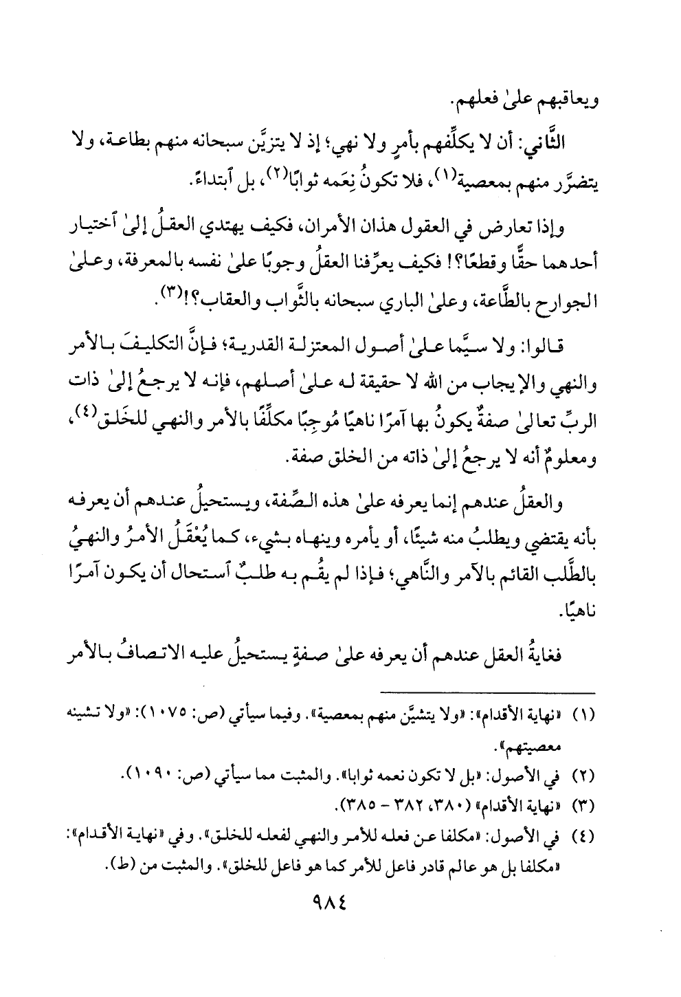 (1) " نهاية الاقدام ": "ولا يتشين منهم بمعصية ". وفيما سيا تي (ص: 75 0 1): " ولا تشينه