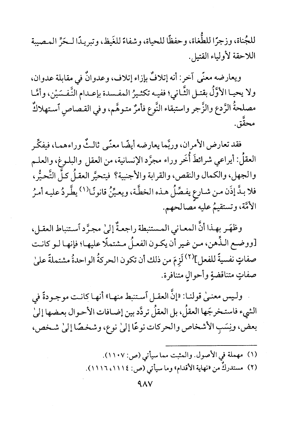 وظهر بهذا أن المعاني المستنبطة راجعة إلى مجرد استنباط العقل،