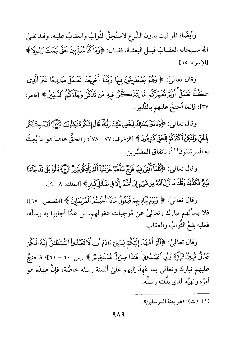 الله سبحانه العقاب قبل البعثة، فقال: <وماكنا معذبين حني نجعث رسو،)