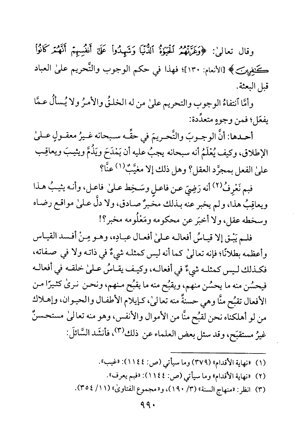 أحدها: أن الوجوب والتحريم في حقه سبحانه غير معقول على
