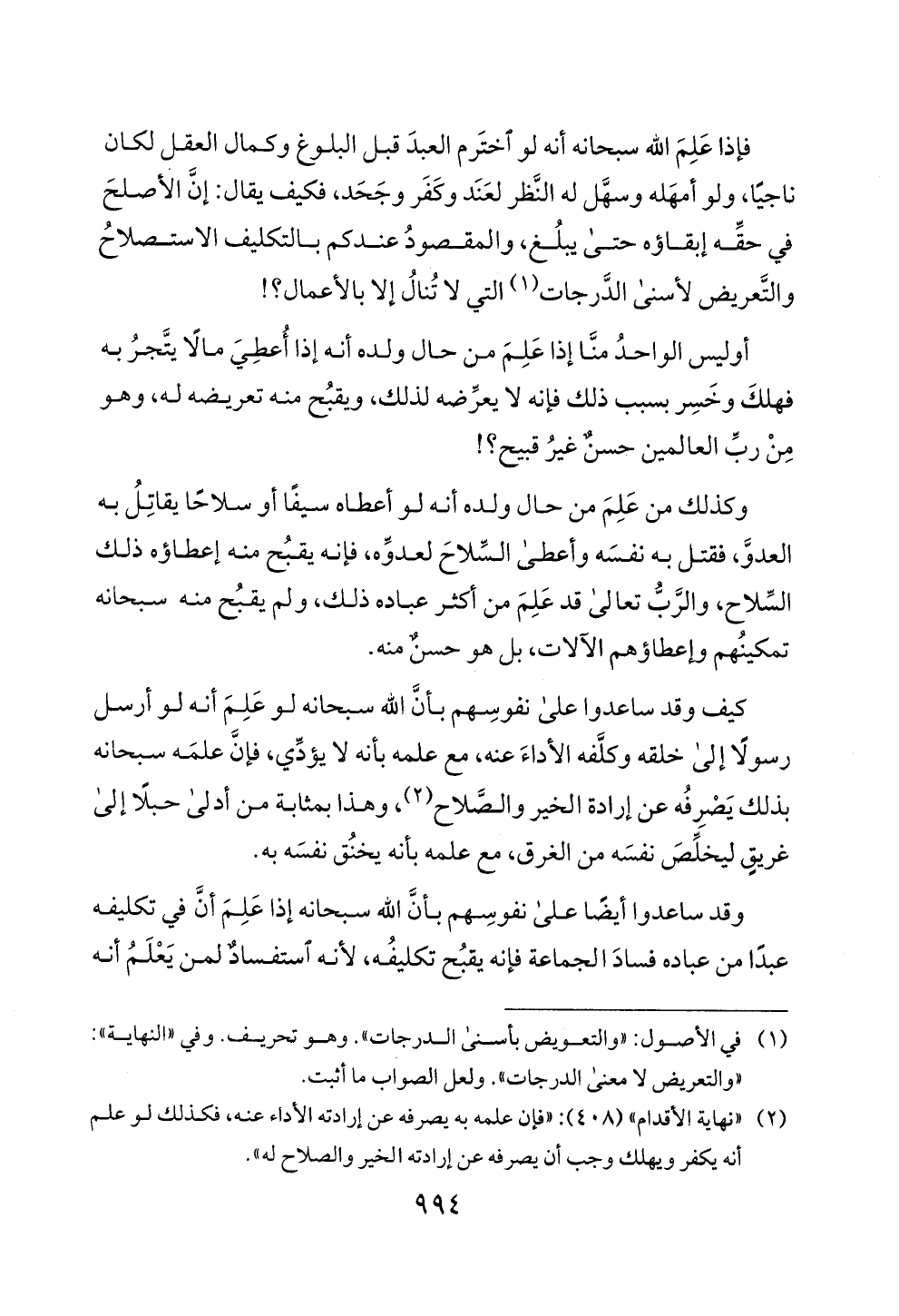 وقد ساعدوا أيضا على نفوسهم بأن الله سبحانه إذا علم أن في تكليفه
