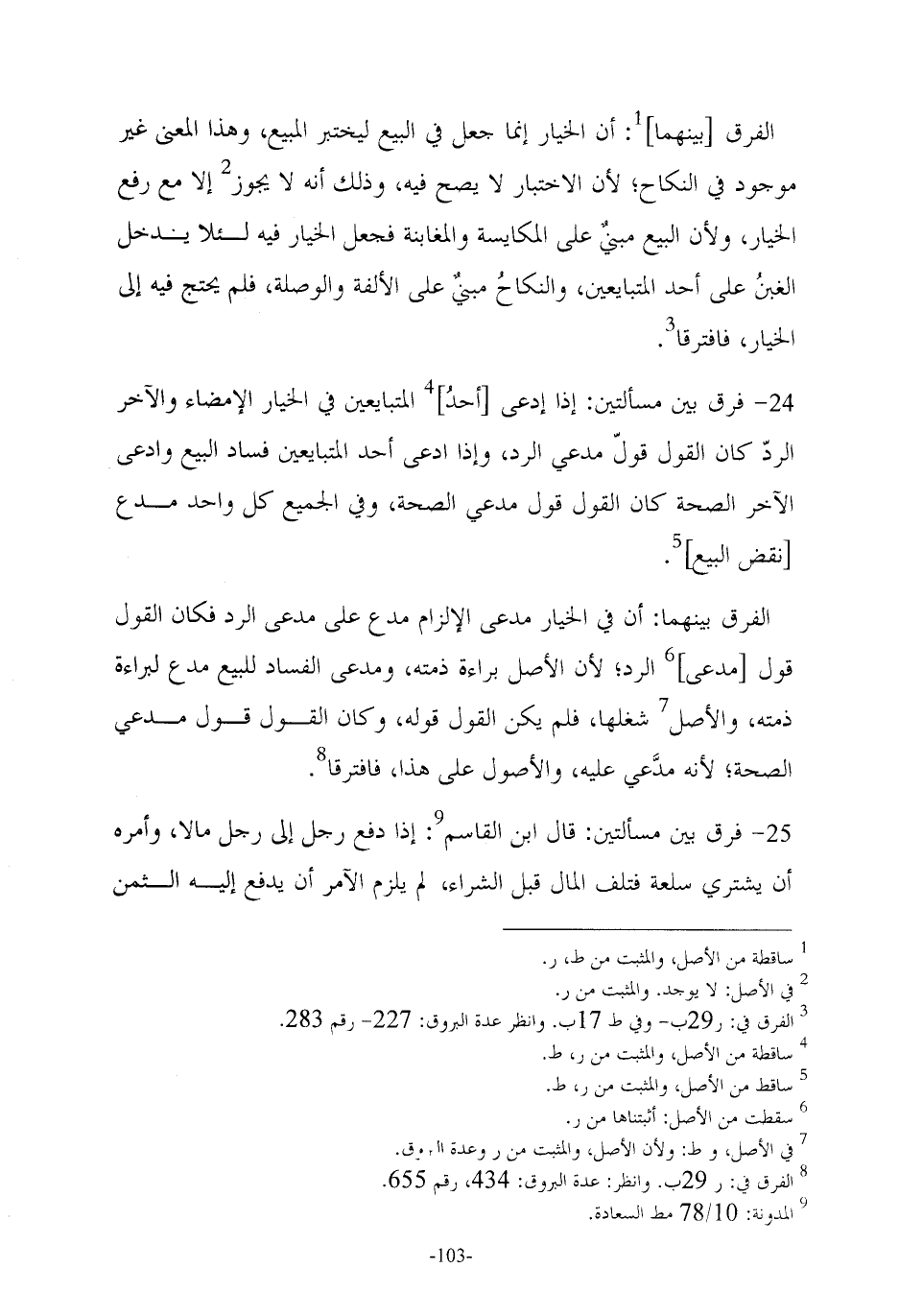 (¬8) الفرق في: ر 29 ب. وانظر: عدة البروق: 434، رقم 655.