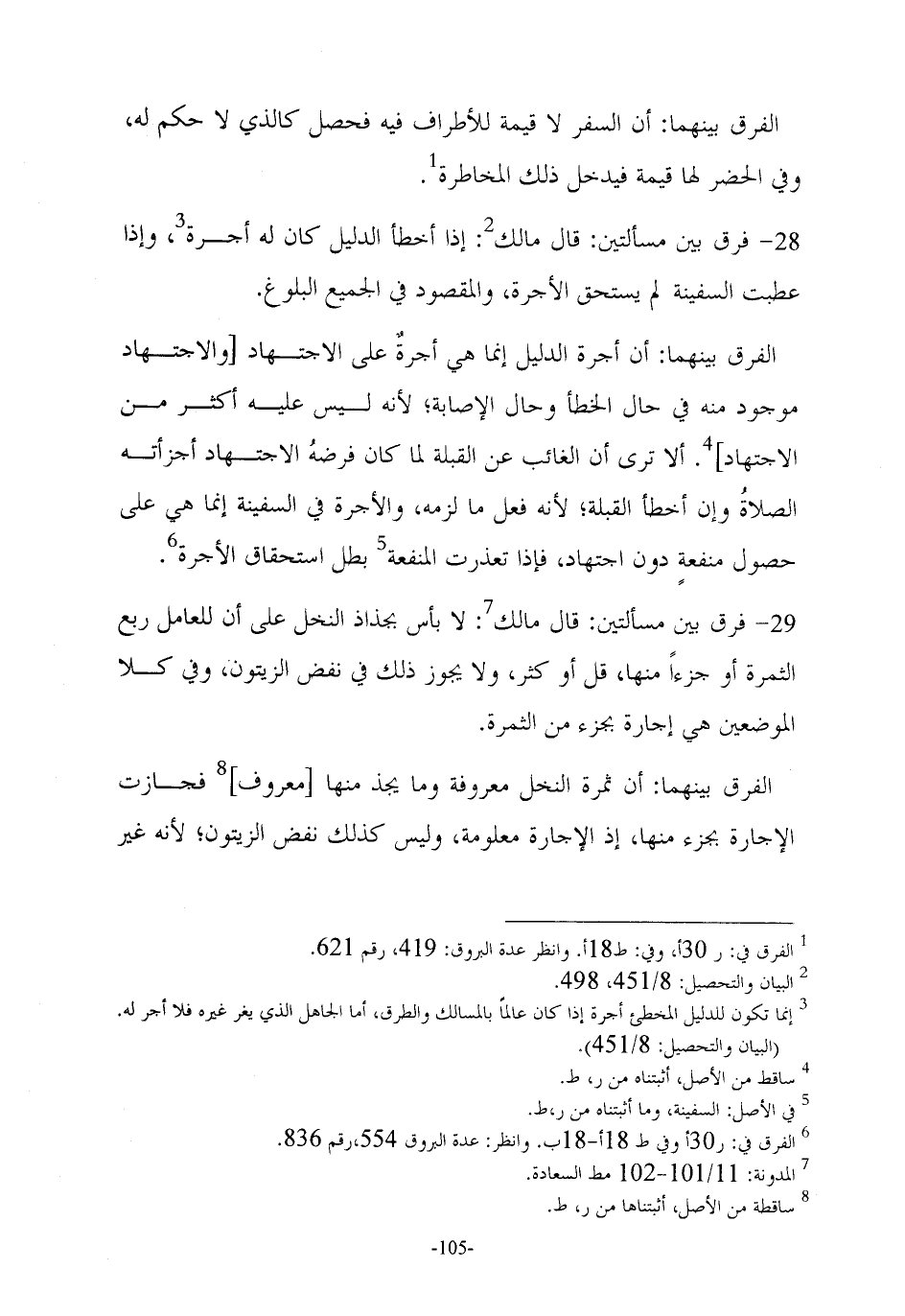 (¬1) الفرق في: ر 30 أ، وفي: ط 18 أ. وانظر عدة البروق: 419، رقم 621.