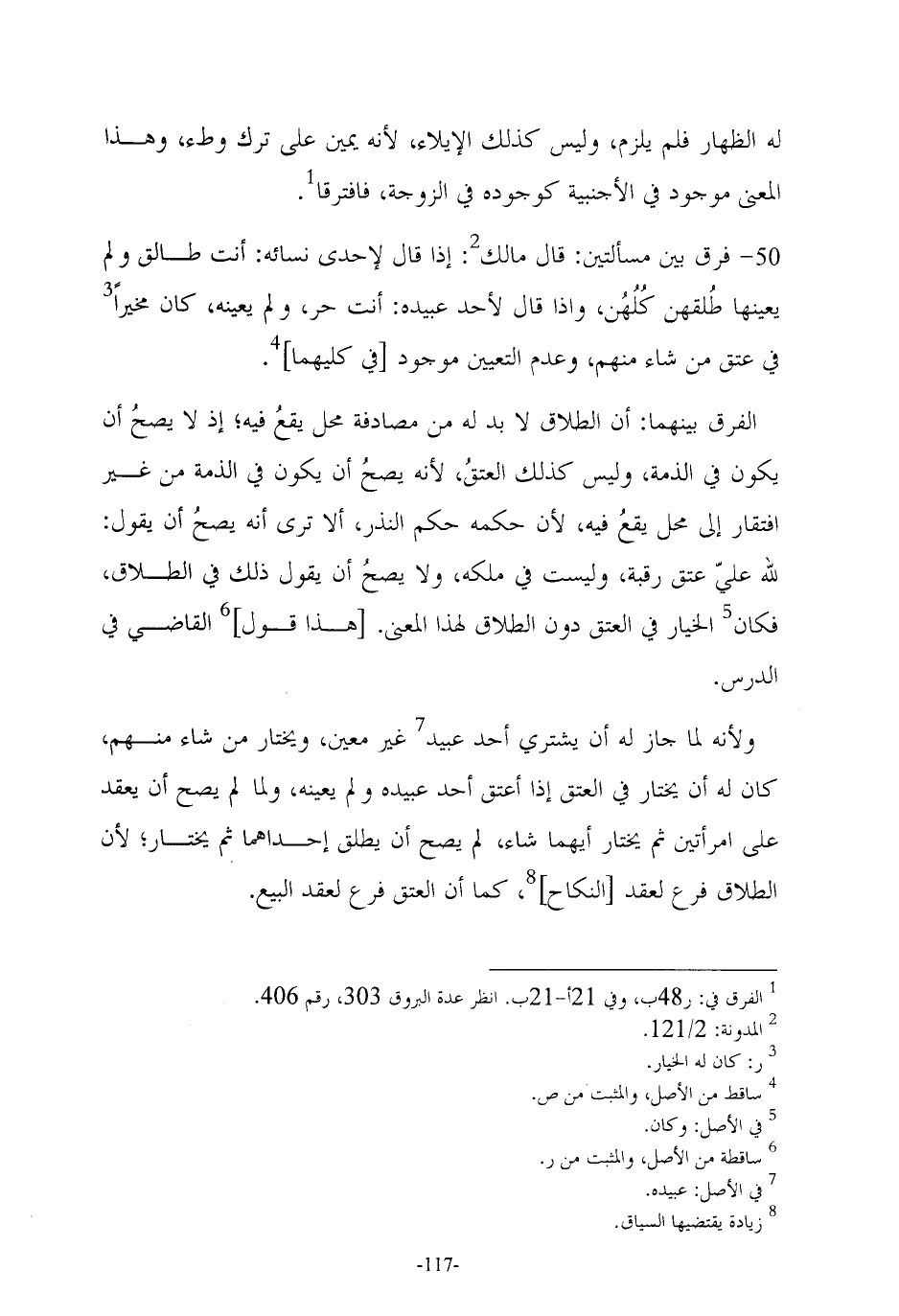 (¬1) الفرق في: ر 48 ب، وفي 21 أ - أ 21 ب. انظر عدة البروق 303، رقم 406.