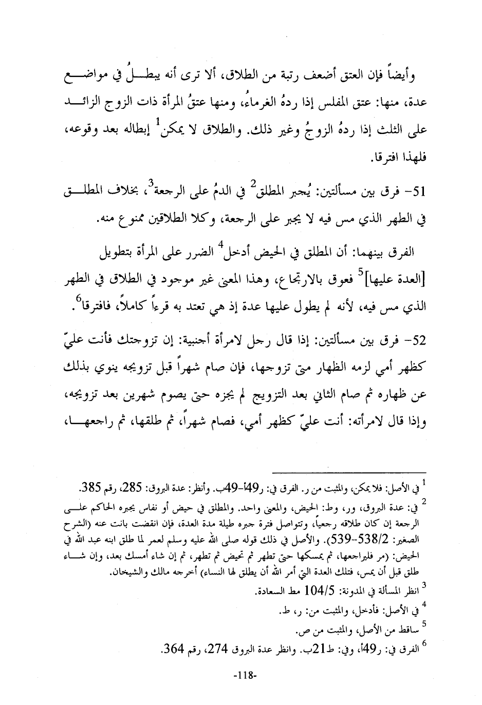 51 - فرق بين مسألتين: يُجبر المطلق (¬2) في الدمُ على الرجعة (¬3)، بخلاف المطلق في الطهر الذي مس فيه لا يجبر على الرجعة، وكلا الطلاقين ممنوع منه.