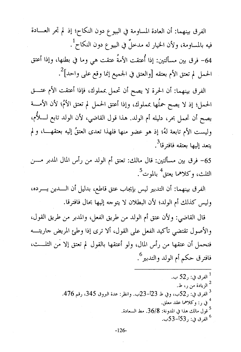 (¬3) الفرق في: ر 52 ب، وفي ط 23 أ - 23 ب. وانظر: عدة البروق 345، رقم 476.