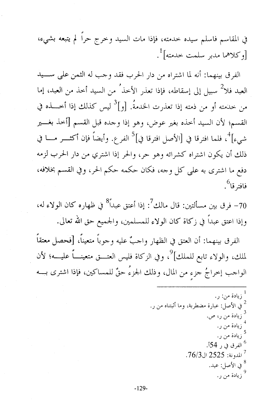 70 - فرق بين مسألتين: قال مالك (¬7): إذا أعتق عبدًا (¬8) في ظهاره كان الولاء له، وإذا اعتق عبدًا في زكاة كان الولاء للمسلمين، والجميع حق الله تعالى.
