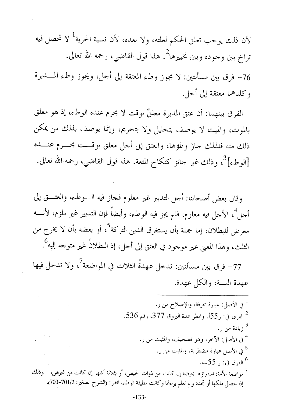 (¬2) الفرق في: ر 55 أ. وانظر عدة البروق 377، رقم 536.
