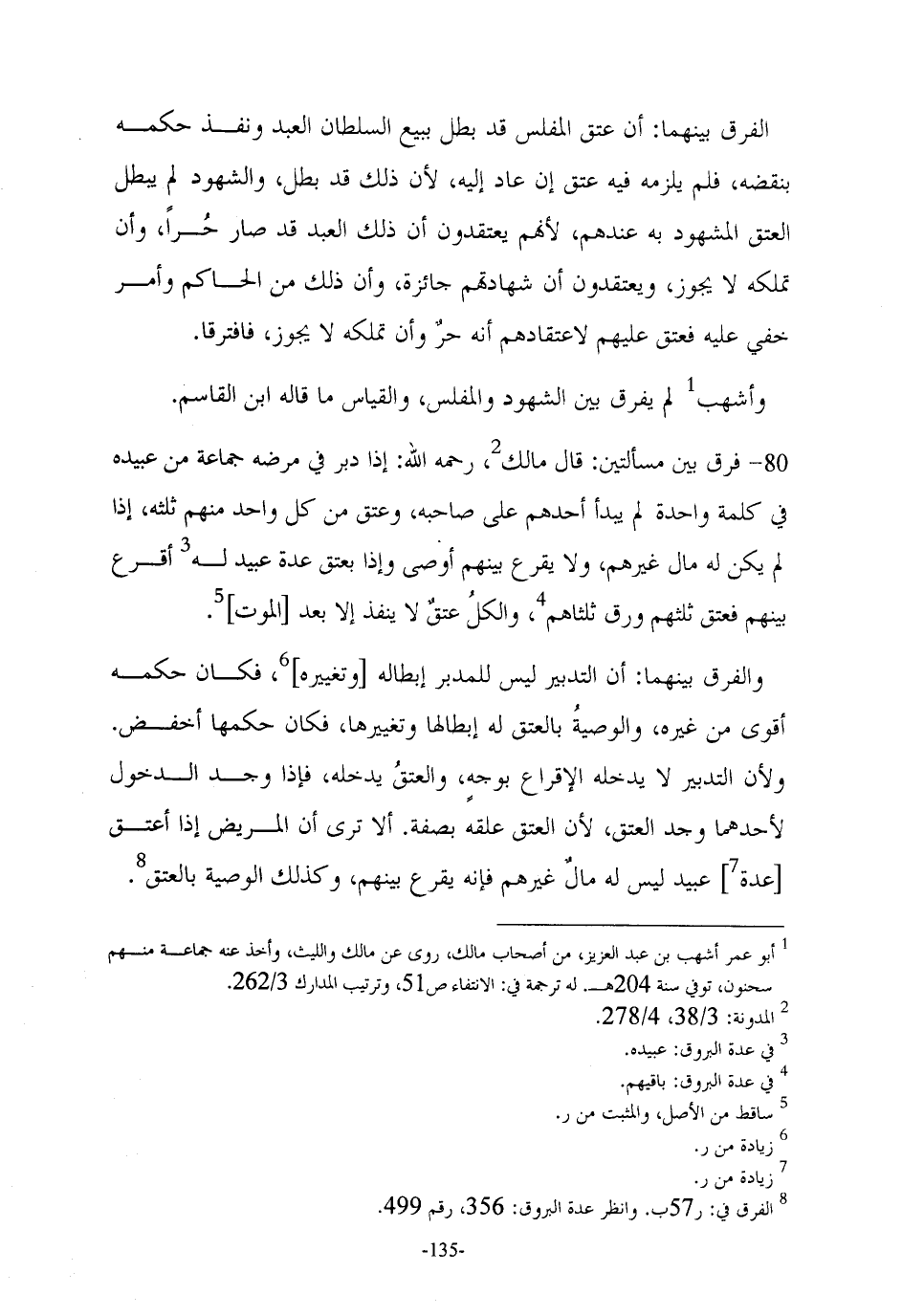 (¬8) الفرق في: ر 57 ب. وانظر عدة البروق: 356، رقم 499.