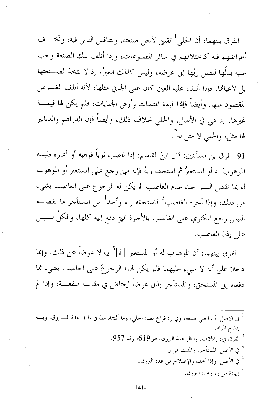 (¬2) الفرق في: ر 59 ب. وانظر عدة البروق، ص 619، رقم 957.
