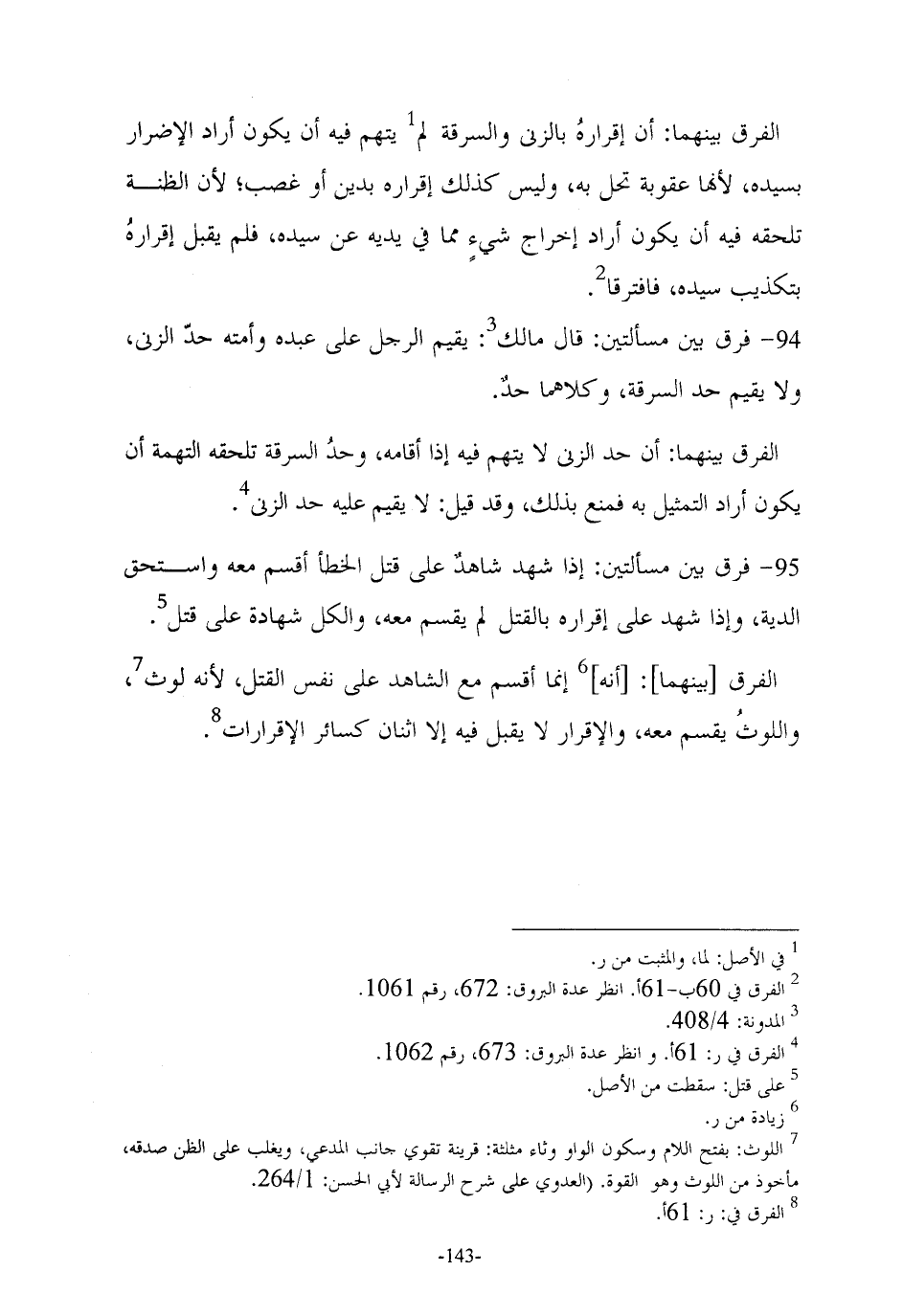 (¬2) الفرق في 60 ب - 61 أ. انظر عدة البروق: 672، رقم 1061.