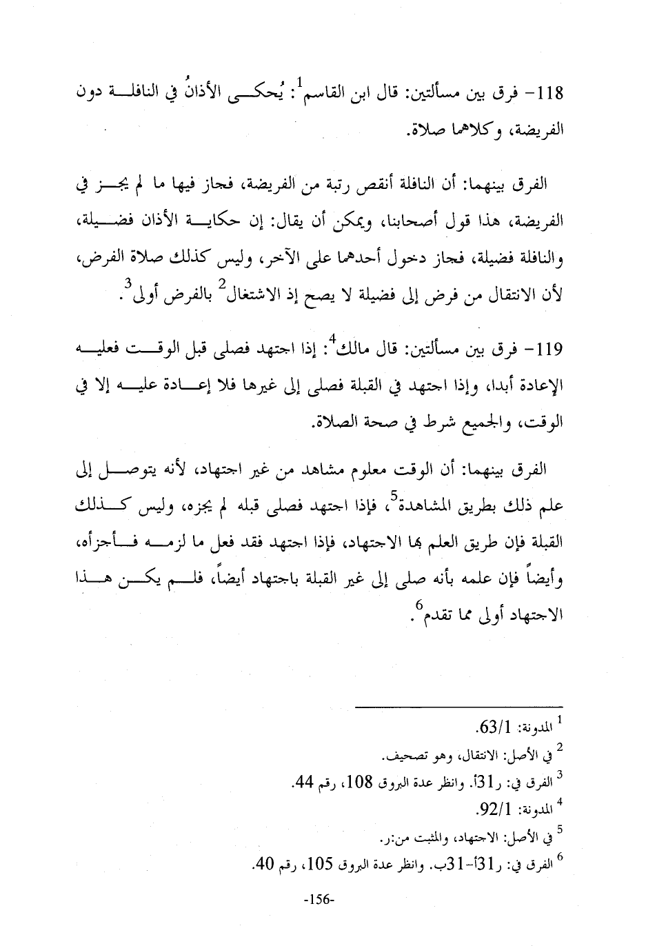 (¬3) الفرق في: ر 31 أ. وانظر عدة البروق 108، رقم 44.
