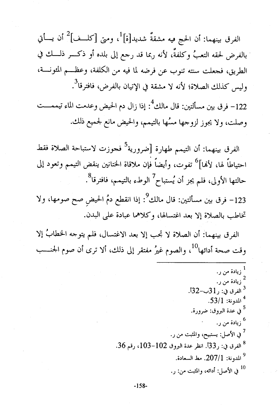 (¬8) الفرق في: ر 33 أ. انظر عدة البروق 102 - 103، رقم 36.