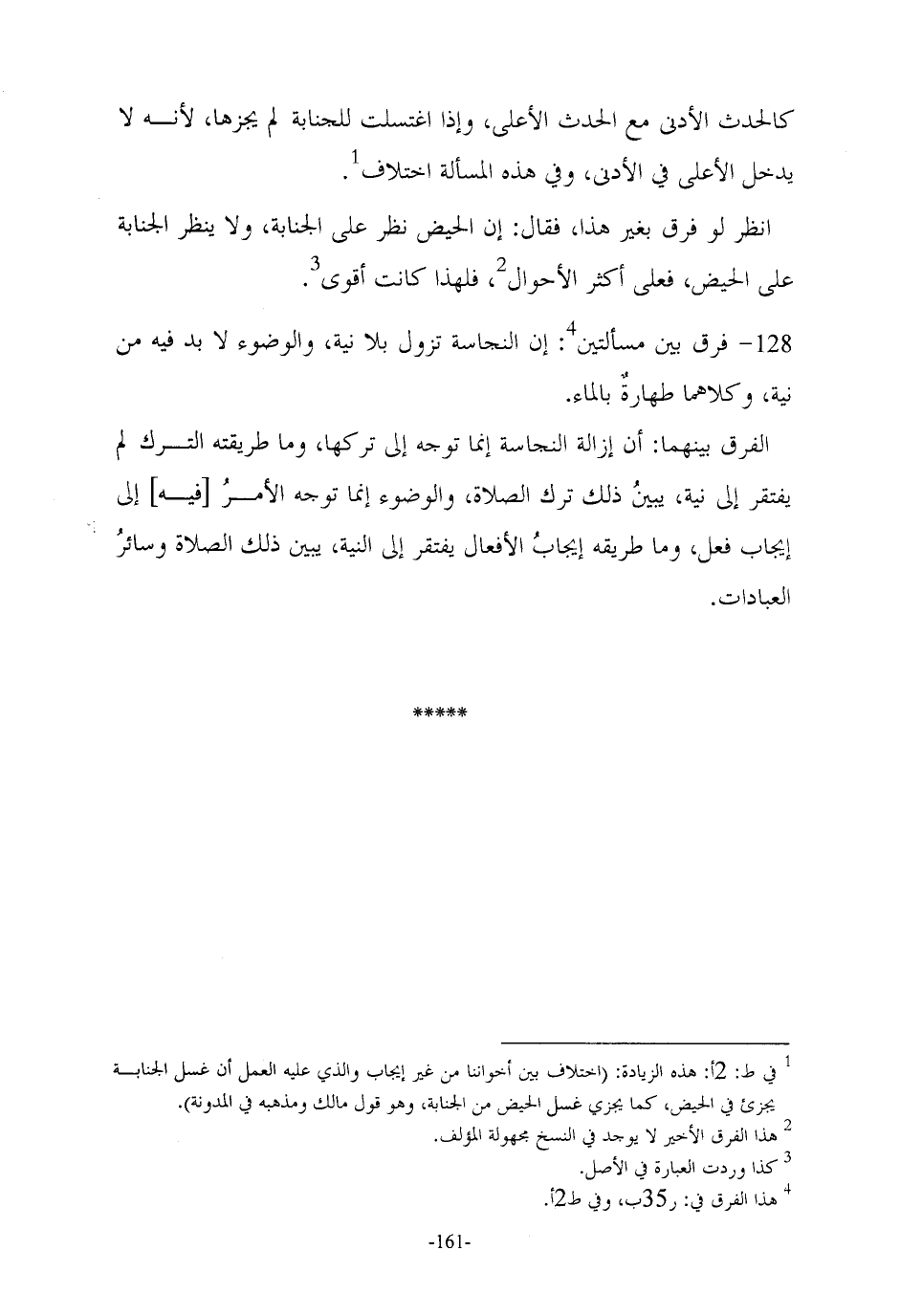 128 - فرق بين مسألتين (¬4): إن النجاسة تزول بلا نية، والوضوء لا بد فيه من نية، وكلاهما طهارةٌ بالماء.
