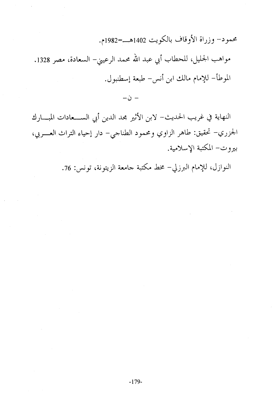 النوازل، للإمام البرزلي - مخط مكتبة جامعة الزيتونة، تونس: 76.