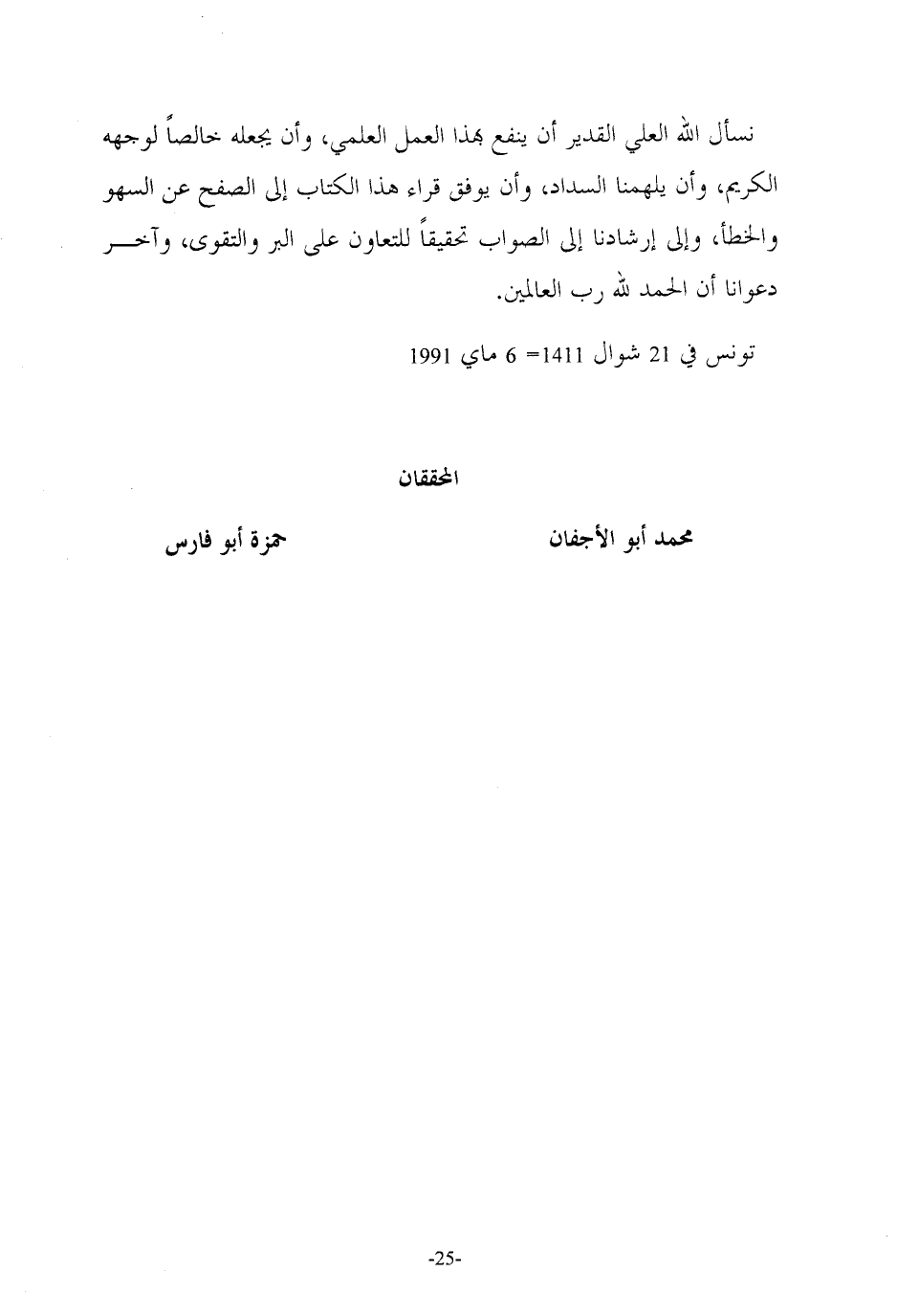 نسأل الله العلي القدير أن ينفع بهذا العمل العلمي، وأن يجعله خالصاً لوجهه الكريم، وأن يلهمنا السداد، وأن يوفق قراء هذا الكتاب إلى الصفح عن السهو والخطأ، وإلى إرشادنا إلى الصواب تحقيقاً للتعاون على البر والتقوى، وآخر دعوانا أن الحمد لله رب العالمين.
