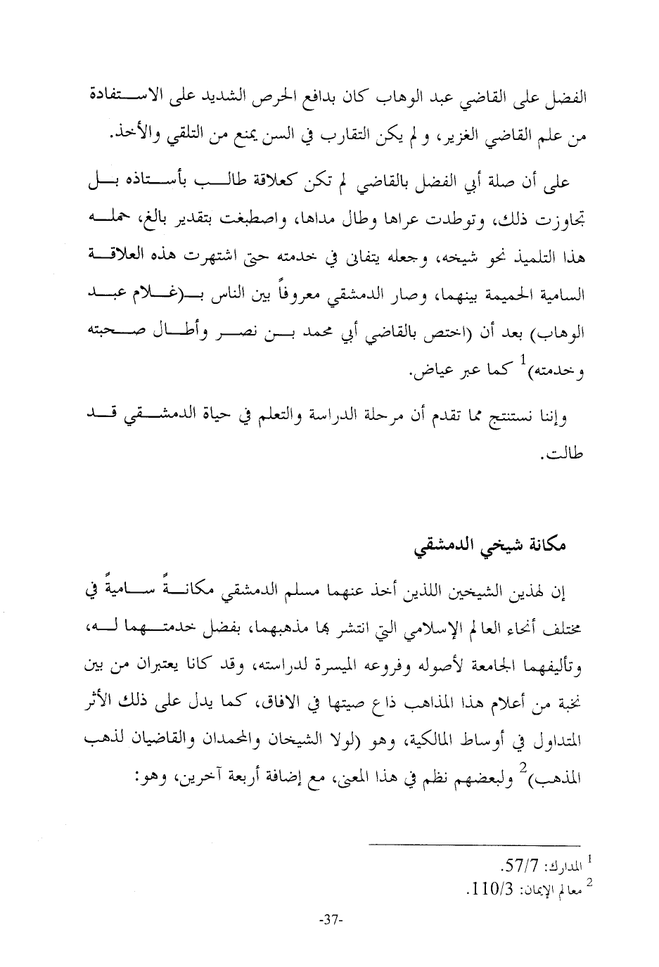 وإننا نستنتج مما تقدم أن مرحلة الدراسة والتعلم في حياة الدمشقي قد طالت.