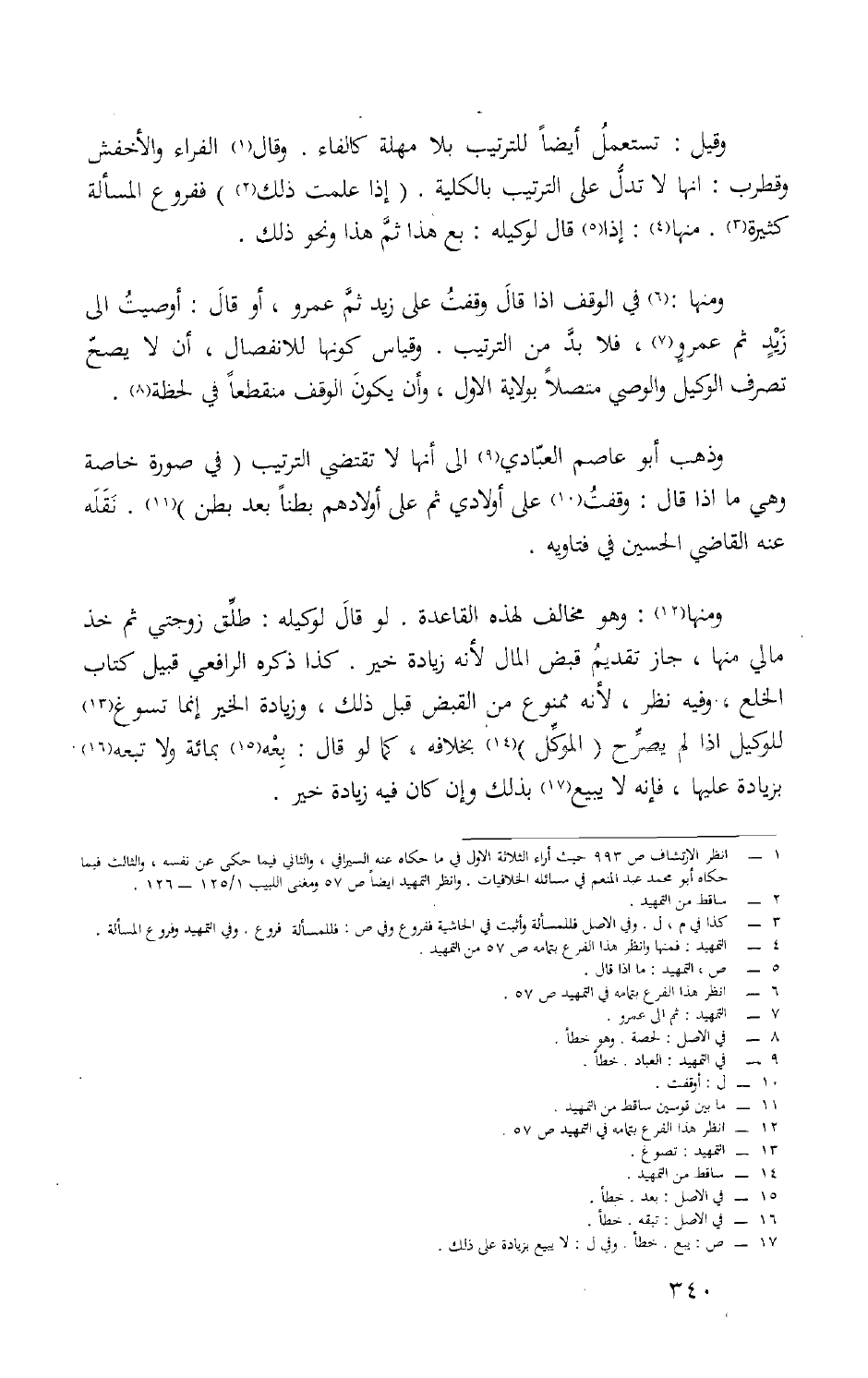 وَقيل تسْتَعْمل أَيْضا للتَّرْتِيب بِلَا مهلة كالفاء وَقَالَ الْفراء والأخفش وقطرب إِنَّهَا لَا تدل على التَّرْتِيب بِالْكُلِّيَّةِ إِذا علمت ذَلِك ففروع الْمَسْأَلَة كَثِيرَة مِنْهَا إِذا قَالَ لوَكِيله بِعْ هَذَا ثمَّ هَذَا وَنَحْو ذَلِك