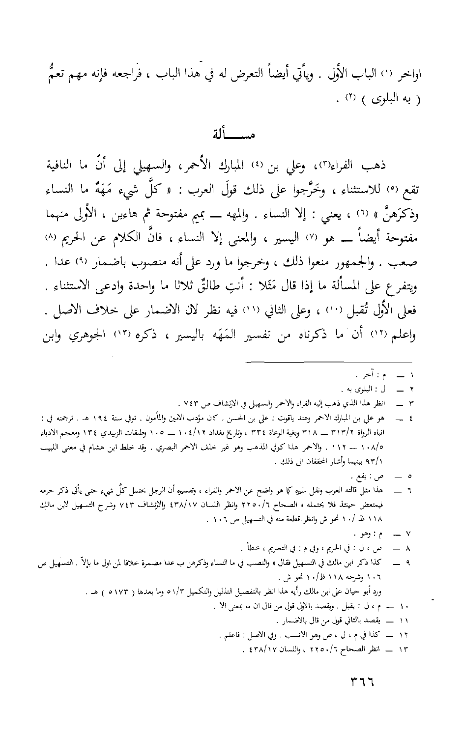 ذهب الْفراء وَعلي بن الْمُبَارك الْأَحْمَر والسهيلي إِلَى أَن مَا النافية تقع للاستثناء وَخَرجُوا على ذَلِك قَول الْعَرَب كل شَيْء مهه مَا النِّسَاء وذكرهن يَعْنِي إِلَّا النِّسَاء والمهه بميم مَفْتُوحَة ثمَّ هاءين الأولى مِنْهُمَا مَفْتُوحَة أَيْضا هُوَ الْيَسِير وَالْمعْنَى إِلَّا النِّسَاء فَإِن الْكَلَام عَن الْحَرِيم صَعب وَالْجُمْهُور منعُوا ذَلِك وَخَرجُوا مَا ورد على أَنه مَنْصُوب بإضمار عدا وَيتَفَرَّع على الْمَسْأَلَة مَا إِذا قَالَ مثلا أَنْت طَالِق ثَلَاثًا مَا وَاحِدَة وَادّعى الِاسْتِثْنَاء فعلى الأول تقبل وعَلى الثَّانِي فِيهِ نظر لِأَن الْإِضْمَار على خلاف الأَصْل وَاعْلَم أَن مَا ذَكرْنَاهُ من تَفْسِير المهه باليسير ذكره الْجَوْهَرِي وَابْن