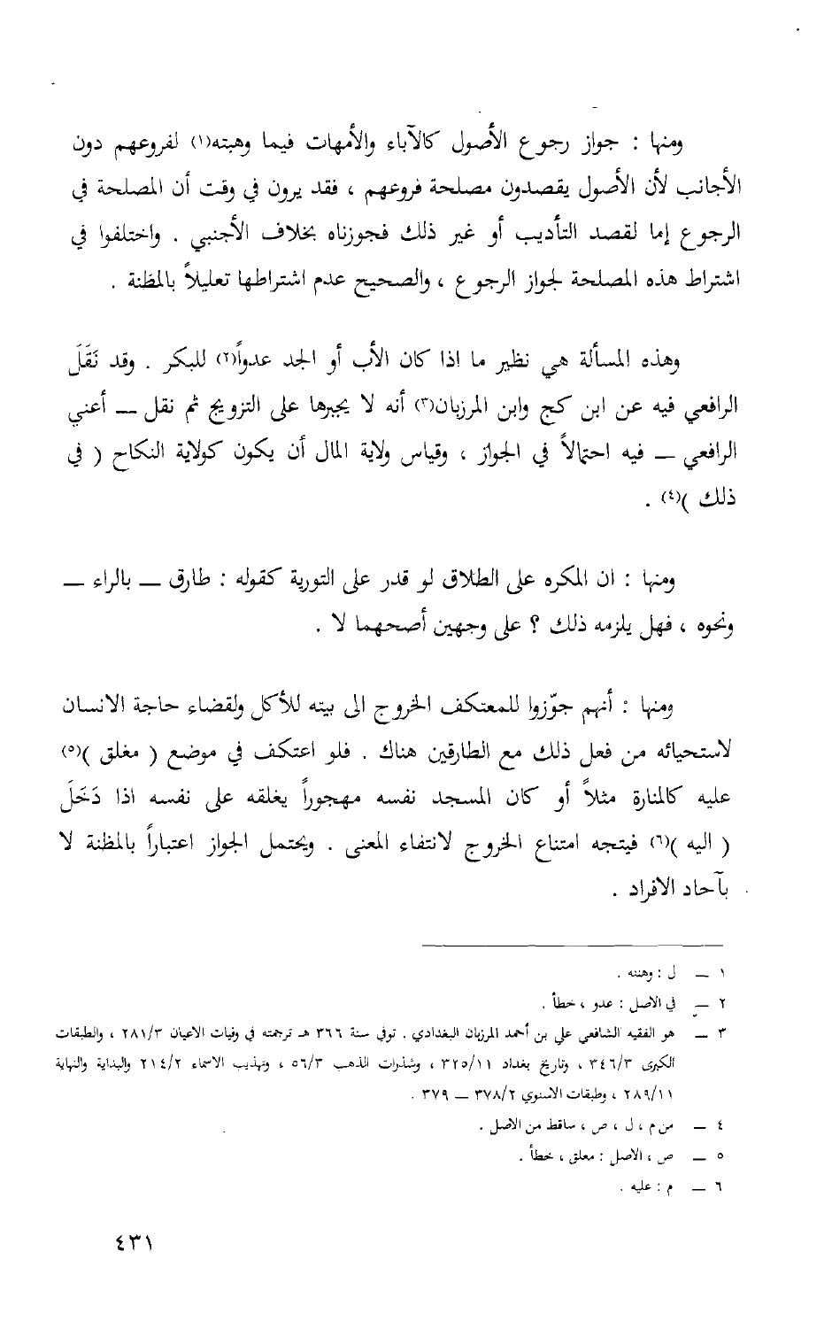 وَمِنْهَا جَوَاز رُجُوع الْأُصُول كالآباء والأمهات فِيمَا وهبته لفروعهم دون الْأَجَانِب لِأَن الْأُصُول يقصدون مصلحَة فروعهم فقد يرَوْنَ فِي وَقت أَن الْمصلحَة فِي الرُّجُوع إِمَّا لقصد التَّأْدِيب أَو غير ذَلِك فجوزناه بِخِلَاف الْأَجْنَبِيّ وَاخْتلفُوا فِي اشْتِرَاط هَذِه الْمصلحَة لجَوَاز الرُّجُوع وَالصَّحِيح عدم اشْتِرَاطهَا تعليلا بالمطنة