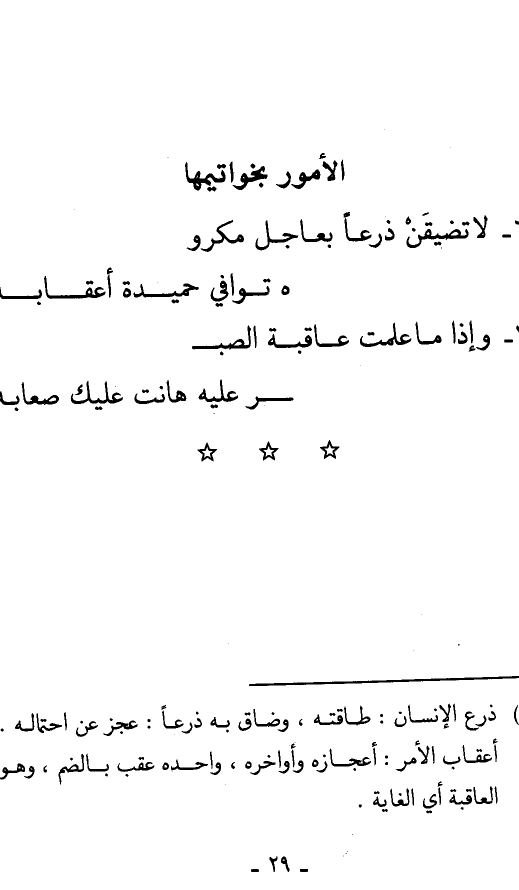 لا تضيقَنْ ذرعاً بعاجل مكرو ... ه توافي حميدة أعقابه