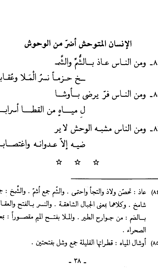 ومن الناس مشبه الوحش لا ير ... ضيه إلا عدوانه واغتصابه