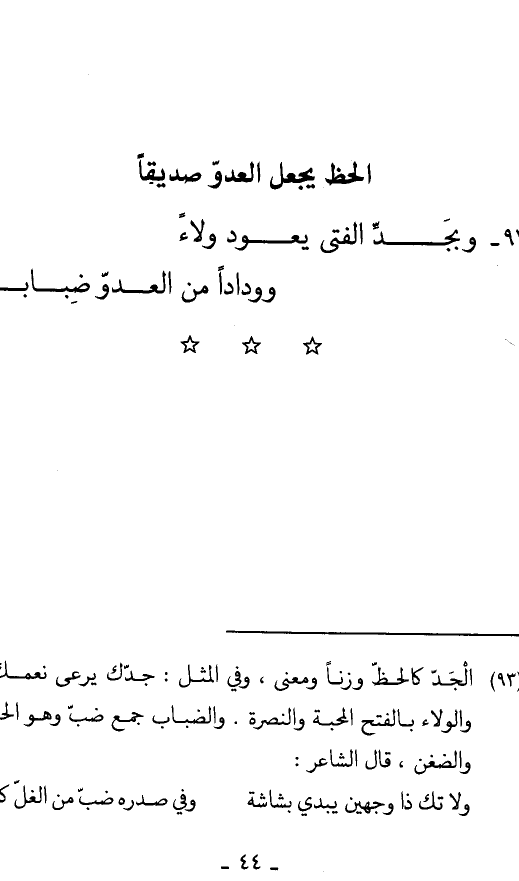 وبجد الفتى تعود ولاءً ... ووداداً من العدو ضبابه