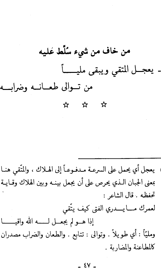 يجعل المتقي ويبقى ملياً ... من توالي طعانه وضرابه