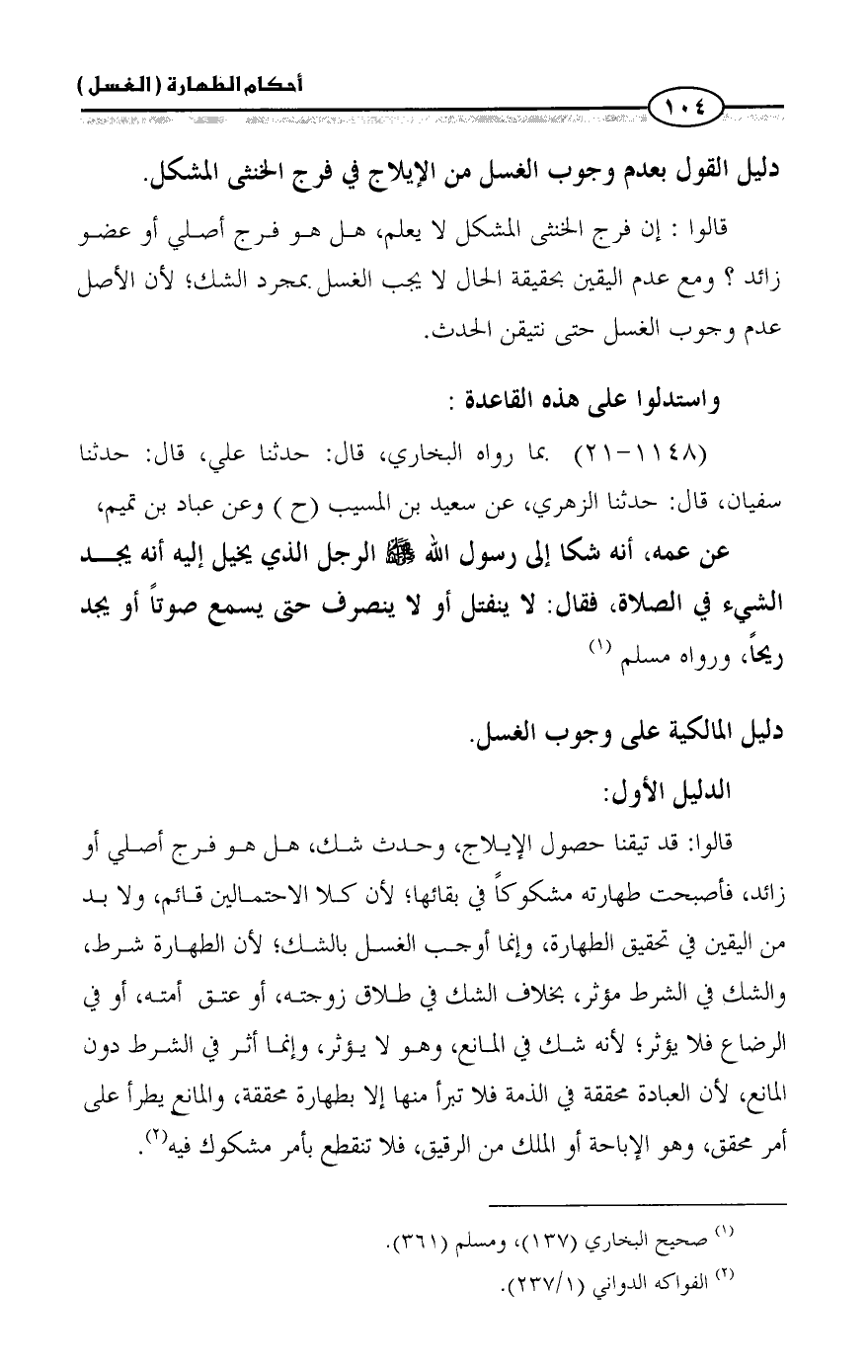 دليل المالكية على وجوب الغسل.